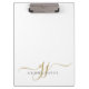An elegant gold script monogram clipboard featuring a flowing signature style initial paired with a clean serif name layout. The graceful gold lettering creates a refined, personal look while keeping the design simple and professional. The monogram becomes the focal point, giving the clipboard a polished signature feel that stands out without feeling busy. A stylish choice for organizing notes, client forms, checklists, or everyday paperwork at a desk, studio, classroom, or office. Also makes a thoughtful personalized gift for professionals, creatives, and anyone who appreciates elegant monogram stationery.