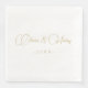 Elegant script gold and white wedding paper napkins. Easily add your custom details.
