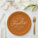 Elegant Script Grad Cap Burnt Orange Graduation Paper Plate