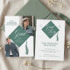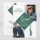 Graduation Announcement and party invitation designed with a timeless, elegant aesthetic that highlights your grad's milestone in an elegant classic style. The front features a graceful, flowing calligraphy “Grad” script paired with a grad cap and hanging tassel. Two photo spaces, allowing you to showcase your graduates’ portraits with sophistication. An varsity stye text complemented by the graduation year and a personalized school name, creating a polished, cohesive look. The back features a chic hunter green grad cap and tassel with "Grad Party designed within the grad cap with a section in the middle for the grad party details. Perfect for high school seniors, college graduates, and university celebrations, this announcement is ideal for families who love modern elegance with a classic, blending simplicity, personalization, and timeless style in one beautiful keepsake. Design by Moodthology Papery.