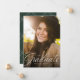A classic and elegant script graduate in white sits at the bottom of a vertical photo. The custom text includes room for the graduate's name and also school and year details. The hunter green backer has a simple grid pattern, and the colour can be changed by clicking "customize further." Announce your graduate's accomplishment to friends and family with this design!