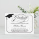 © Socialite Designs. Our elegant script "graduate" text and graduation cap, with black text on white background, add a touch of simple elegance to this graduation invitation. The back of the invitation includes text for the continuing education or milestones of your child. Easily replace our template text for your special event. All design elements can be moved, rotated resized or deleted individually.