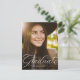 Celebrate your grad and invite guests with this classic vertical one-photo graduation announcement postcard that features an elegant modern calligraphy script on the front and a customizable back for your party details.