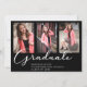 Elegant Script Graduation 3 Photo Black Invitation