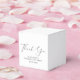 Elegant minimal graduation party favour box featuring "Thank You" in a stylish script and the grad's name and party date in simple typography.