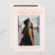 Chic graduation thank you card with graduate photo, elegant script, and space for school name and class year. Background colour is peach.