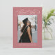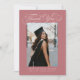Chic graduation thank you card with graduate photo, elegant script, and space for school name and class year. Background colour is pink.