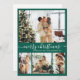 Elegant Script Green 4 Photo Collage Christmas Holiday Card