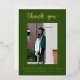 Say thank you to all your graduation guests with this elegant gold foil graduation thank you card. This card features a green background with gold foil text. Text on the front and back can be customized to create your own personal message.
