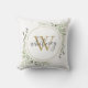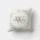 Elegant Script Greenery Monogram Initial Throw Pillow