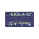 Chic, modern and simple botanical wedding return address label features your names in gold elegant hand written script calligraphy on a navy blue background with a stylish touch of watercolor eucalyptus greenery foliage and gold lines. Simply add your names and address. Exclusively designed for you by Happy Dolphin Studio. If you need any help or matching products please contact us at happydolphinstudio@outlook.com. We're happy to help you make your wedding the most beautiful day!