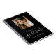 Elegant Script Heart Custom Personalized Photo Wedding Guest Book in black and white. Features modern „guest book” text in hand lettered calligraphy, wedding date and couples first name wit love heart shape. Customize with your favourite photo and personalize your information. It great for wedding or anniversary day.