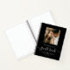 Elegant Script Heart Custom Personalized Photo Wedding Guest Book in black and white. Features modern „guest book” text in hand lettered calligraphy, wedding date and couples first name wit love heart shape. Customize with your favourite photo and personalize your information. It great for wedding or anniversary day.