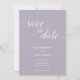 Save the Date in an elegant font and your details below, we show on a soft lilac background, but you can change to any colour! ADD PHOTOS and/or more details on the back, too. Fonts can be changed, just click the CUSTOMIZE further link.