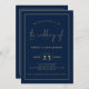 Elegant Script Line QR Code Navy Blue Gold Wedding Invitation