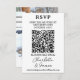 Cartes RSVP de mariage rsvp avec une photo du couple heureux au dos. Ils sont dotés d'un script élégant, d'une typographie audacieuse et d'un code QR pratique sur le devant. Pour modifier le texte et la photo cliquez sur le bouton personnaliser.