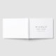 Cet élégant livre d'hôtes de mariage de script est parfait pour un mariage simple. Le design minimaliste noir et blanc présente une typographie romantique avec style glamour moderne. Personnalisable dans n'importe quelle couleur. Gardez le design minimal et élégant, tel quel, ou personnalisez-le en ajoutant vos propres graphiques et artwork. Personnalisez la couverture avec les noms de la mariée et du marié et la date du mariage.
