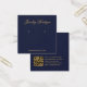 Une simple carte d'affichage marine et aurifère : texte en or sur arrière - plan bleu marine. Le nom est écrit dans une élégante calligraphie" sous lui, les lieux errants indiqués par deux très petits cercles. Le site web a écrit de fermer la frontière inférieure. Il y a plus d'informations sur le dos, dans la partie inférieure. Il a aussi du code QR au dos, à gauche de l'info.