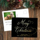 Elegant Script Merry Christmas Black Photo Foil Holiday Postcard