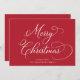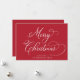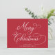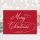 Elegant red holiday card featuring "Merry Christmas" showcased in a stylish white calligraphy script. Add your personalized greeting and family name in simple modern white lettering.