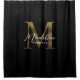 Elegant Script Metallic Black Gold Monogram Shower Curtain