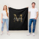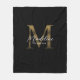 Elegant Script Metallic Black Gold Monogram Fleece Blanket