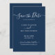 Elegant script minimalist modern non photo navy and white wedding save the date announcement card. Simple clean design template feature an elegant cursive hand lettering typography script „Save the Date” text in white on navy blue background colour. This classic card perfect for a couple who wants a traditional save the date with a modern touch, without a photo. If you need help or matching items, please contact designer.