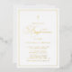 Invite family and friends with this customizable gold foil pressed baptism invitation. It features an elegant script, simple typography, and polka dots pattern. Personalize this gold foil baptism invitation by adding your event details. This minimalist photo invitation is perfect for any theme or season.