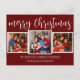 Elegant Script Modern Christmas Family 3 Photo Holiday Postcard