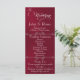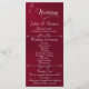 This romantic design features an elegant burgundy background with the wedding ceremony details & thank you on the front, the wedding party members, and heart monogram on the back. Available in several colours to coordinate with your wedding theme. Designed to coordinate with the "Romantic Scroll Hearts & Calligraphy" Wedding Collection.
