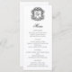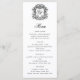 This elegant black and white wedding menu features an ornate crest at the top with the monogram initials of the bride and groom in fancy formal script font. Find matching products in the collection, or message me through Zazzle Chat for more products and design tweaks.