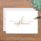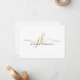 Elegant Script Monogram Initials Name White Gold Note Card. Personalized elegant, minimalist note cards with simple calligraphy script monogram or initials and name in choice of colours (shown in white and faux gold). CHANGES: The text font style, colour, size and placement and/or background colour can be changed by clicking on EDIT in the PERSONALIZE section for a custom look. ASSISTANCE: For help with design modification, transferring the design to another product or if you would like coordinating items, contact the designer BEFORE ORDERING via the Zazzle Chat MESSAGE tab below or email makeitaboutyoustore@gmail.com.