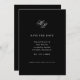 This timeless black-and-white wedding save the date exudes elegance and sophistication. At its centerpiece, a beautiful monogram features the couple's initials in a white Flemish script font. The monochromatic palette enhances the invitation's minimalist charm, allowing the intricate details of the script to take centre stage, evoking a sense of understated luxury. QR code, wedding website and an option to upload your favourite photo is on the back of this card. Perfect for couples who value modern sophistication with a touch of classic romance, this card sets the tone for an unforgettable celebration. Personalize it with your details.