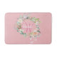 Pretty pink initial monogram bath mat, featuring a beautiful white script name with a complimenting pink initial that is framed by a delicate watercolor floral rose garland on a peach pink background. Designed by Thisisnotme©