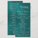 This romantic design features an elegant teal background with the wedding ceremony details & thank you on the front, the wedding party members, and heart monogram on the back. Available in several colors to coordinate with your wedding theme. Designed to coordinate with the "Romantic Scroll Hearts & Calligraphy" Wedding Collection.