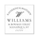 This elegant return address rubber stamp features your first names curved gracefully above your single initial monogram in a formal chic script, with your family name and return address details beneath in elegant vintage typography. Customize this married couple's wedding stamp by clicking on the ´´Personalize´´ button.