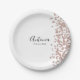 A simple and elegant paper plate that is easy to customize for many different celebrations. Add your name in a black handwritten font and the date in a modern typeface below. A splash of pink confetti decorates the right hand side.
