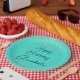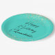 Elegant Script Name Gold Glitter on Turquoise Paper Plate