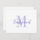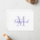 A purple script name monogram in a modern sans script type, contrasted with serif initial and first name. A modern minimalist style stationery notecard. Order in larger quantities for greater savings. Purple and pastel purple.