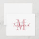 A red script name monogram in a modern sans script type, contrasted with serif initial and first name. A modern minimalist style stationery notecard. Order in larger quantities for greater savings. Red and pale red.