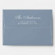 Dusty blue envelope featuring your name in an elegant white script and your address in simple white typography.