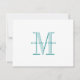 A teal simple light teal initial monogram, with a drop shadow, in a modern sans script type, contrasted with serif name. A modern minimalist style stationery notecard. Order in larger quantities for greater savings.