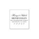 Easily personalize these custom Elegant Script Names Wedding Return Address rubber stamps with your own names and address. To customize these rubber stamps, click on "Personalize this template" and change the text in the boxes provided. Available with different ink pad colours (not included) in square sizes 1 inch, 2 inch, or 2.5 inch or rectangular sizes 1x2.5 inch, 1.5x3 inch and 4x5 inch with a handle or without a handle. PLEASE NOTE: Our default sizes for wooden rubber stamps are 1 inch square or 1x2.5 inch rectangle. For use as a return address stamp most people will require a larger size than this. Please view your design on the monitor as close to actual size as possible to ensure that the text prints at the expected size. These return address rubber stamps are laser engraved on foam cushion. No minimum order quantity.