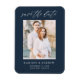Announce your upcoming nuptials with this Elegant Script photo save the date magnet. “Save the Date” is displayed in a modern white calligraphy script above your engagement photo on a navy background. Personalize this timeless design with your names, wedding date, and location. A beautiful keepsake for guests to display on their refrigerator as a reminder of your special day.