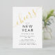 Personalized Elegant Script New Year Party Gold Foil Invitation.