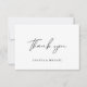 Script de calligraphie simple et moderne en noir et blanc à envoyer après votre mariage. Customisez-le avec vos propres noms sur le devant et le message au verso ou supprimez le texte au verso et ajoutez votre note manuscrite.