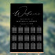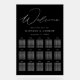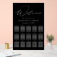 Tableau de sièges mariage moderne avec "Welcome" affiché en haut dans un élégant script de calligraphie blanc avec un arrière - plan acrylique noir. Personnalisez le tableau minimaliste en noir et blanc avec vos noms, votre date de mariage et vos noms d'invités pour vos 15 tables. Le design s'harmonise avec notre collection de mariage Modern Elegant.
