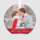 Élégant Script Notre premier Mariage de Noël Photo Ornement rouge avec des flocons de neige retour
