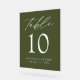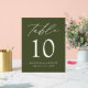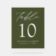 Cartes de numéro de table mariage tendance et minimaliste avec "Table" affichées dans un script de calligraphie blanc avec un arrière - plan acrylique vert olive. Pour commander le panneau de carte de table acrylique : ajoutez votre nom, votre date de mariage et votre numéro de table. Ajoutez chaque numéro à votre panier individuellement et retirez-le lorsque vous avez terminé.