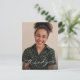 This one photo graduation thank you postcard is a great way for your graduate to show appreciation for gifts and support. With a modern and elegant script "thank you" in white on a vertical photo, this design also features room for personalization including name or other text. The back of the postcard has room for you custom text, which can also be left blank to allow for a hand-written message. This stylish graduation thank you works well for a high school graduate or a college graduate and is simple enough to work for other occasions too. Matching graduation announcements and invitations available in the collection by Lea Delaveris Design.